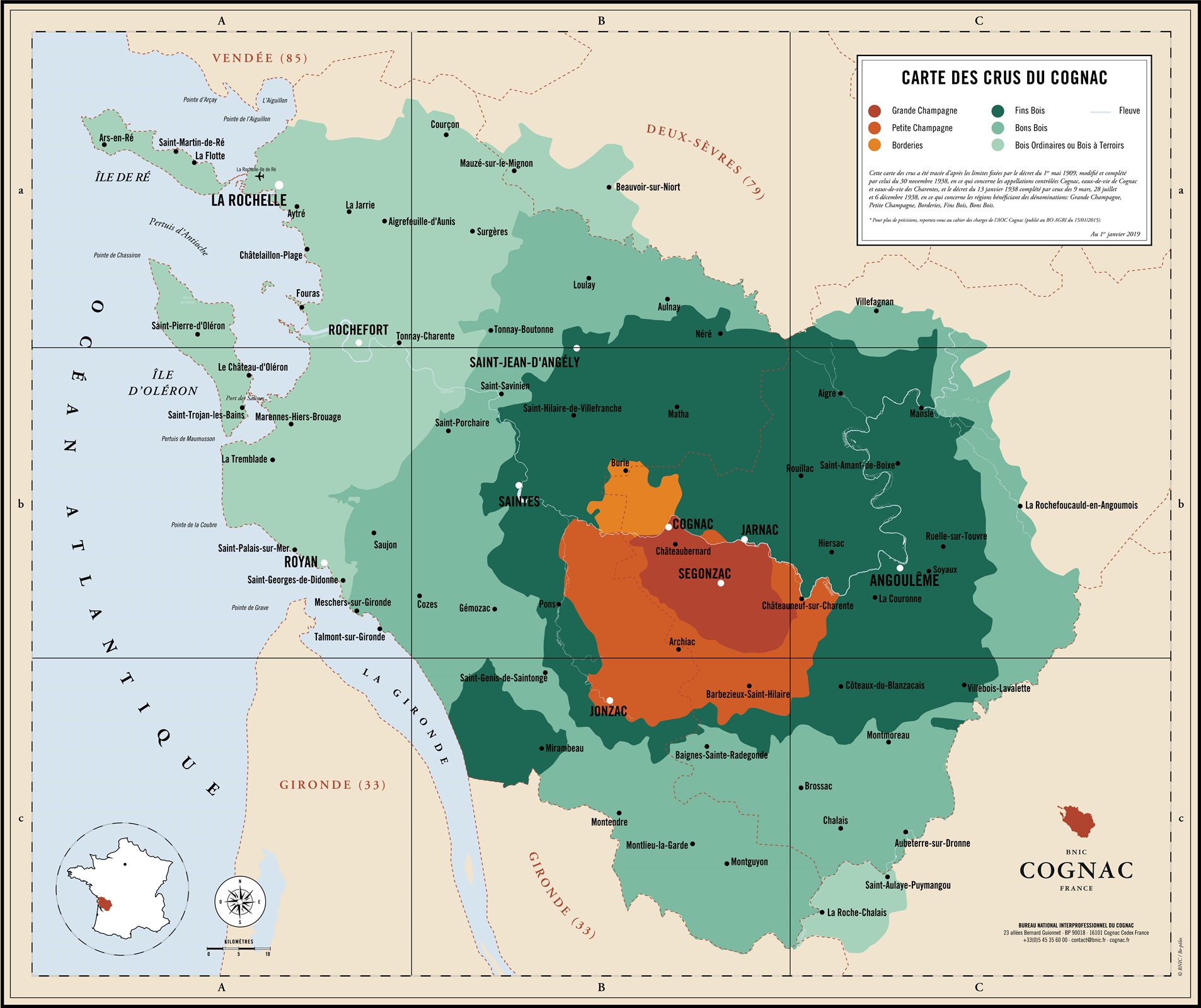 Borderies: самый маленький крю, известный округлыми коньяками с нотами фиалки.