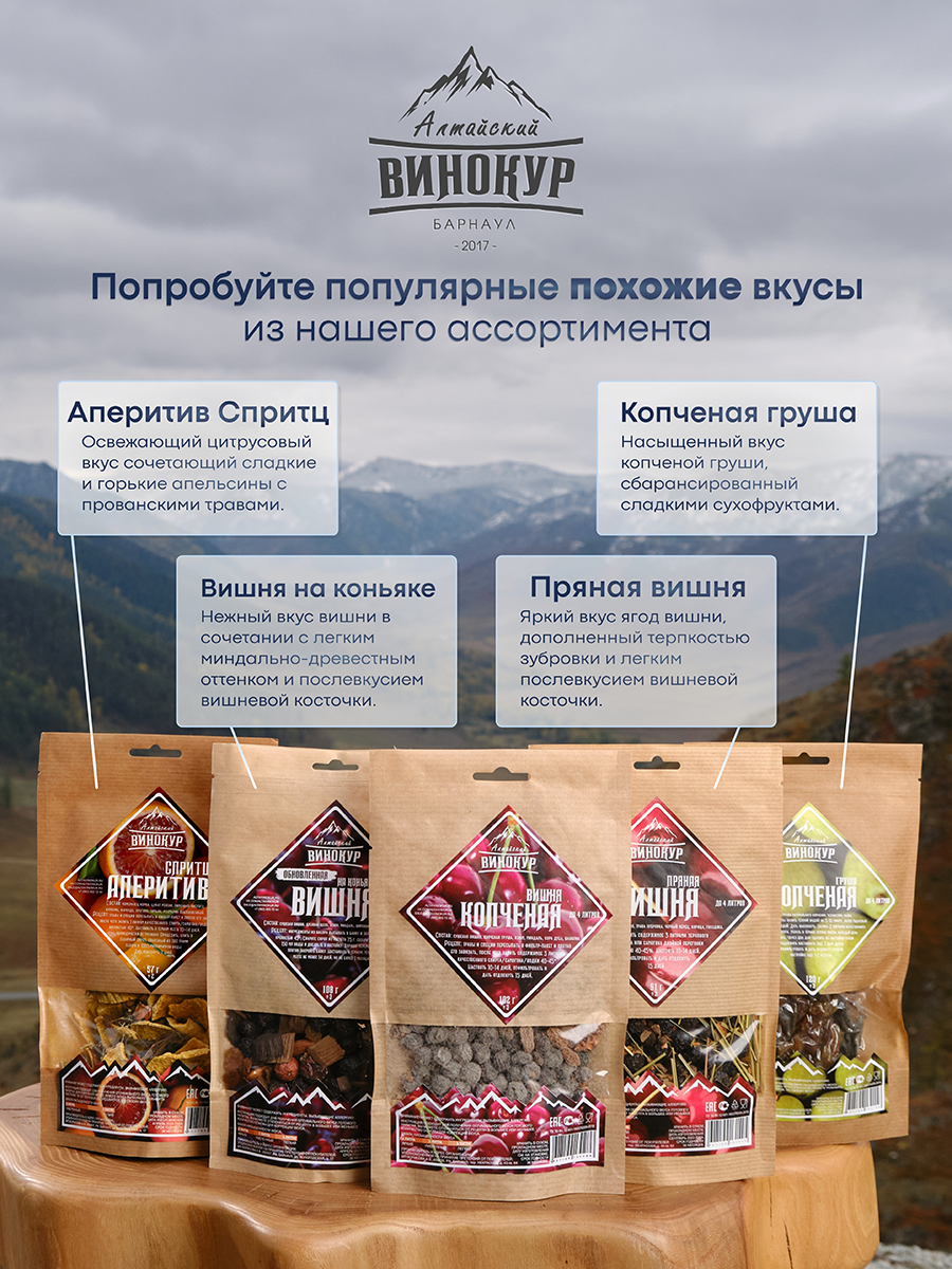 Откройте для себя новый уровень глубины и благородства с новинкой от "Алтайского Винокура" – настойка на сушеной вишне ! Это настоящая симфония контрастов: сладость сухофруктов, терпкость вишни, бархатная ореховая нота, теплота ванили и, главное, уникальный благородный шлейф копчения, вплетенный в насыщенную основу. Идеальный выбор для ценителей сложных, "взрослых" вкусов.